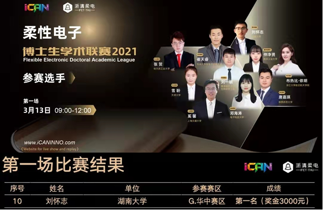 11月12日,由浙江清华柔性电子技术研究院联合艾瞰(iCAN International Contest of innovAtioN)举办的“2021年全国柔性电子博士生学术联赛总决赛”圆满落下帷幕,来自清华大学、北京大学、中科院等高校和科研院所的100名博士研究生参加了比赛。经过十大赛区的层层选拔,我院2018级博士研究生刘怀志成功入围华中科技大学黄永安老师领衔的华中赛区,并凭借其研究课题“柔性智慧微金属网格”在开赛阶段以优异表现荣获“单场冠军”,同时在总决赛舞台上凭借精彩发挥荣获“年度优秀奖”。该赛事由湖南大学段辉高、张冠华、陈逢军等老师指导,受到了机械学院领导的高度重视和支持。