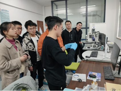 此次培训主要针对场发射扫描电子显微镜系统进行设备介绍和操作演示。场发射扫描电子显微镜系统能够实时观察材料变形过程中的微观形貌变化、晶粒取向变化、组织成分演变,以及裂纹的萌生和扩展行为等,具备能谱分析(EDS)、电子背散射衍射(EBSD)以及SEM扫描电镜观察等测试功能。是我院使用频率较高,需求较大,共性较强的常用设备。由姜潮老师团队成员曹瑀成博士针对性能参数、使用规程、样品要求、试验操作和分析等方面对场发射扫描电子显微镜系统进行了详细讲解。并分为两组对参会同学进行了现场演示实验。会上大家针对各自领域对设备的需求进行了提问和交流,收获满满。