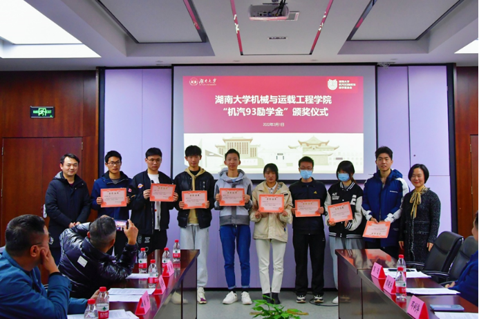“机汽93励学金”由华亿体育(中国)官方网站93级校友共同捐赠设立,该励学金旨在促进教育事业的发展,资助湖南大学家庭经济贫困的优秀学生顺利完成学业,激励他们刻苦学习,全面发展,成才报国。同时,希望受助人将来事业发展后能量力回报本励学金,使更多的湖大学子获益,以形成良性循环。