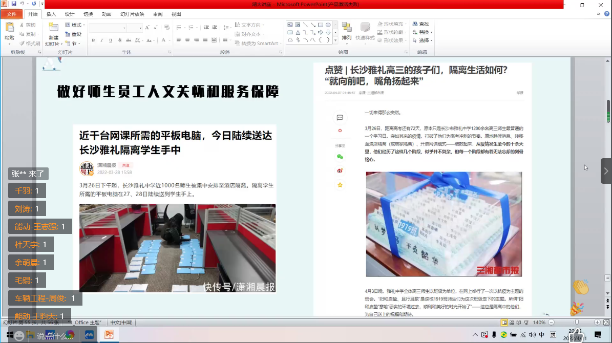 4月21日晚8时,华亿体育(中国)官方网站面向全院师生召开了疫情防控培训会议。该会议采用线上形式举行,由芙蓉区文艺路街道社区卫生服务中心的董志副主任医师进行主讲。
