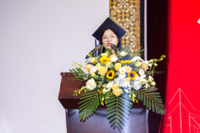 研究生代表陈淑君呼吁同学们无论在哪里,无论做什么,都不要忘记曾在机械院的所学所感,应脚踏实地,持之以恒,展示出湖大机械的独有风采。