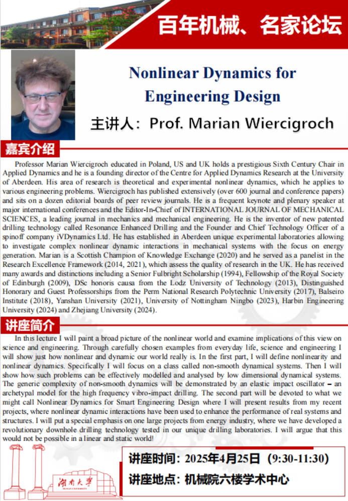 “百年机械、名家论坛”——Prof. Marian Wiercigroch