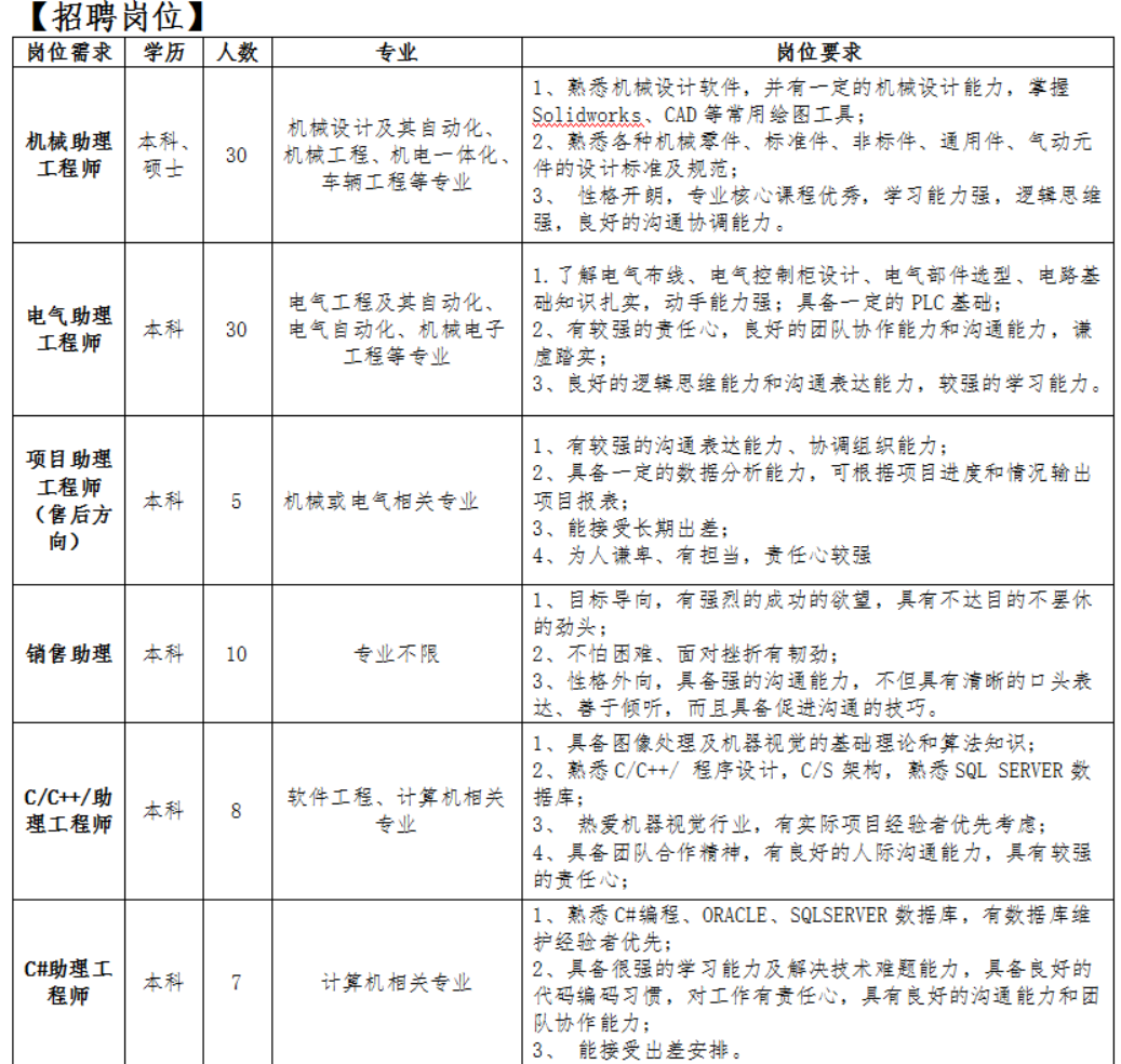 招聘专业:机械工程,机械设计制造及其自动化,电气工程及其自动化,电气类,机械类