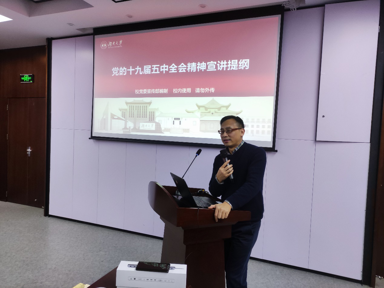 姜潮教授围绕党的十九届五中全会基本概况、我国进入新发展阶段的重大意义、2035年远景目标和“十四五”期间我国发展的指导方针、我国进入新发展格局的有利条件和重要特征、坚持党的全面领导为实现目标团结奋斗等五个方面讲解全会精神。同时,姜潮教授结合党的发展历程、党中央重要决策部署、学生成长等方面,针对如何在日常学习和生活中学习贯彻党的十九届五中全会精神与党员们进行讨论。