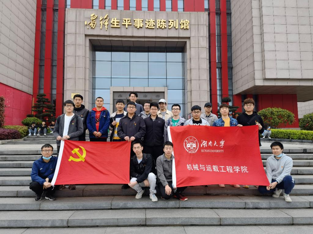 2021年3月28日上午,机械与运载工程学院本科生车辆第一、第二党支部前往湖南省雷锋纪念馆,开展了主题为“传承雷锋精神,献礼建党百年”主题党日活动。通过参观雷锋纪念馆,两个支部的同志们一起了解雷锋同志的光荣事迹,学习雷锋精神,为中国共产党的百年华诞献礼。
