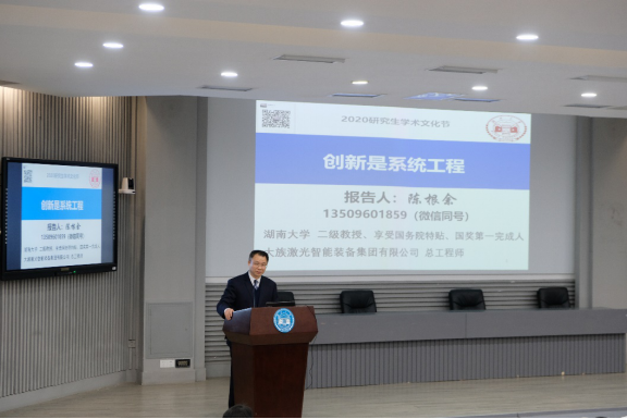 2020年11月28日下午,湖南大学第六届研究生学术文化节—名师讲堂系列讲座顺利举办,本期“名师讲堂”讲座由湖南大学党委研究生工作部主办,华亿体育(中国)官方网站承办,主讲人陈根余教授以“创新是个系统工程”为题,与在场老师及同学交流自己的科研心得。