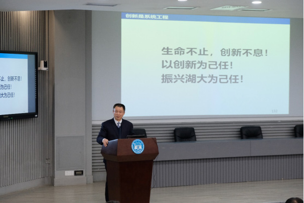 讲座最后,陈教授以一句“生命不止,创新不息!以创新为己任!振兴湖大为己任!”激励湖大学子要不断进取,开阔创新。创新是一个人思维力的体现,是一个人一生中最宝贵的财富,本期“创新是个系统工程”讲座是对创新思维和创新能力的宣传和推广,相信一定会使同学们终身受益。