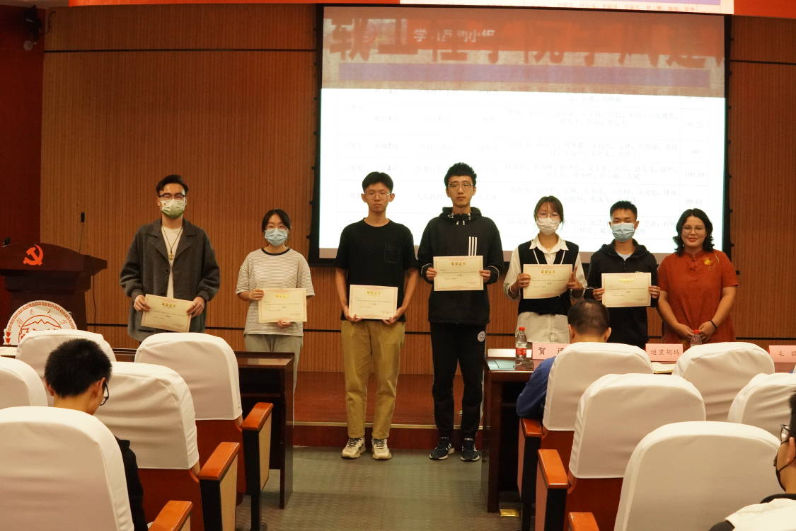接着,进入颁奖环节。贺书记和几名辅导员老师分别为学习互助小组组长、学科王者、进步之星、帮扶之星颁发奖状并合影留念。